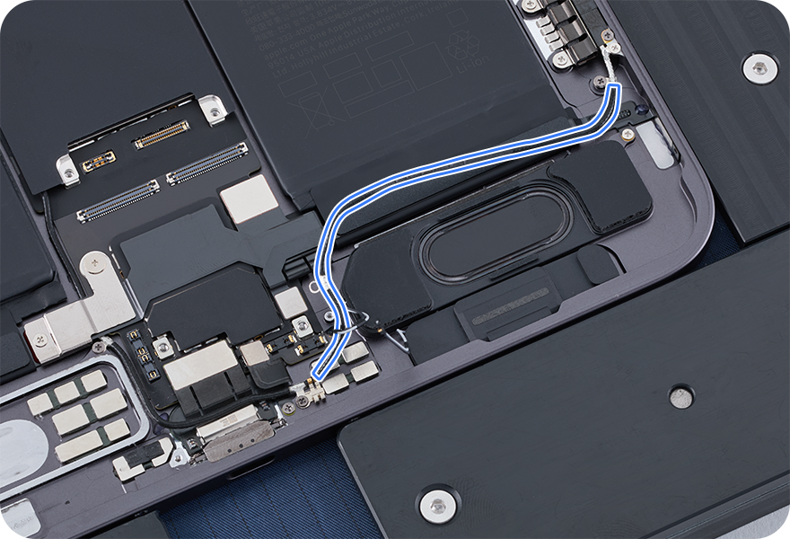 Alleen Wi-Fi-modellen: Gebruik de zwarte momentschroevendraaier en het kruiskopbitje om één nieuwe kruiskopschroef (452-10574) in de antenne te draaien.