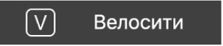 Велосити Бегунок велосити | Коснитесь кнопки «Велосити» для доступа к бегунку велосити. Перетяните линию для установки требуемого значения велосити. | |