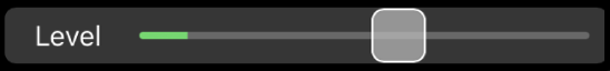 Tlačidlá ovládajúce úrovne (tlačidlo má farebnú čiaru pod textom označujúcu posuvník): Podržte tlačidlo stlačené, kým sa zobrazí posuvník, a upravte ho potiahnutím prsta. Po skončení uvoľnite tlačidlo.