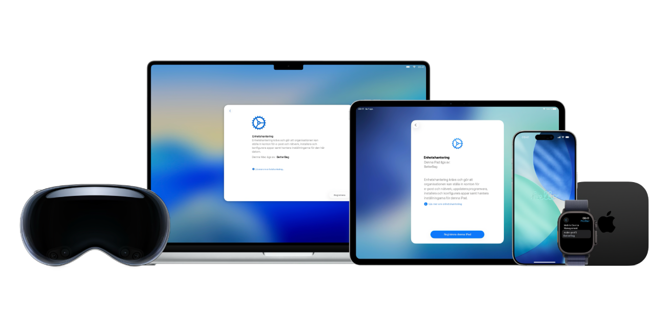 Apple-enheter integrerar maskinvara, programvara, appar och tjänster så att du enkelt kan hantera dina driftsättningsprojekt. Få den kontroll och flexibilitet du vill genom att använda Apple School Manager eller Apple Business Manager och din valda enhetshanteringstjänst.