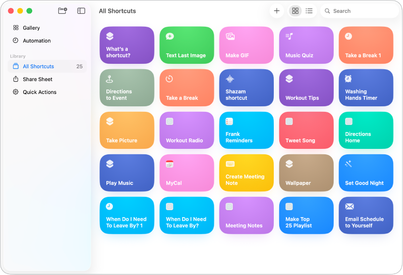 Tab Bộ sưu tập có một tập hợp các phím tắt sáng tạo và hữu ích được tuyển chọn. Khám phá Bộ sưu tập để kiểm tra các khả năng của phím tắt và xem cách xây dựng chúng. Khi bạn tìm thấy một phím tắt trong Bộ sưu tập mà bạn thích, hãy thêm vào bộ sưu tập phím tắt và tùy chỉnh để phù hợp với nhu cầu của bạn.