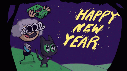 የይዘት መግለጫ: a happy new year greeting card with a cat