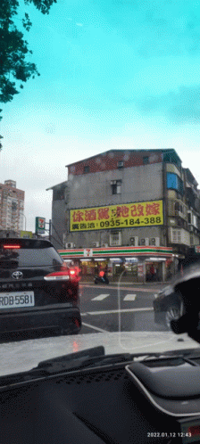 आशयाचे वर्णन: a 7 eleven store has a yellow sign on the side of it