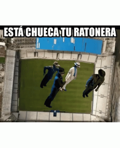 Descrição do conteúdo: an aerial view of a soccer field with the words " esta chueca tu ratonera "