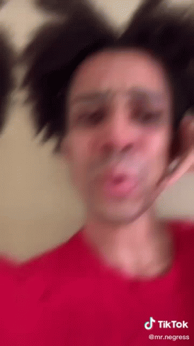Descrierea conținutului: a man in a red shirt is making a funny face with a tiktok watermark