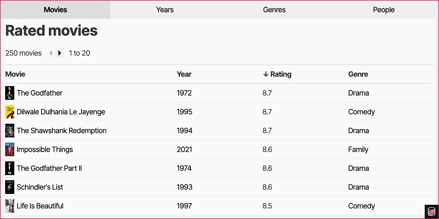 The Movie Database demo showcases the relational query capabilities of TinyBase v2.0, joining together information about movies, directors, and actors from across multiple source tables. Try this demo here.