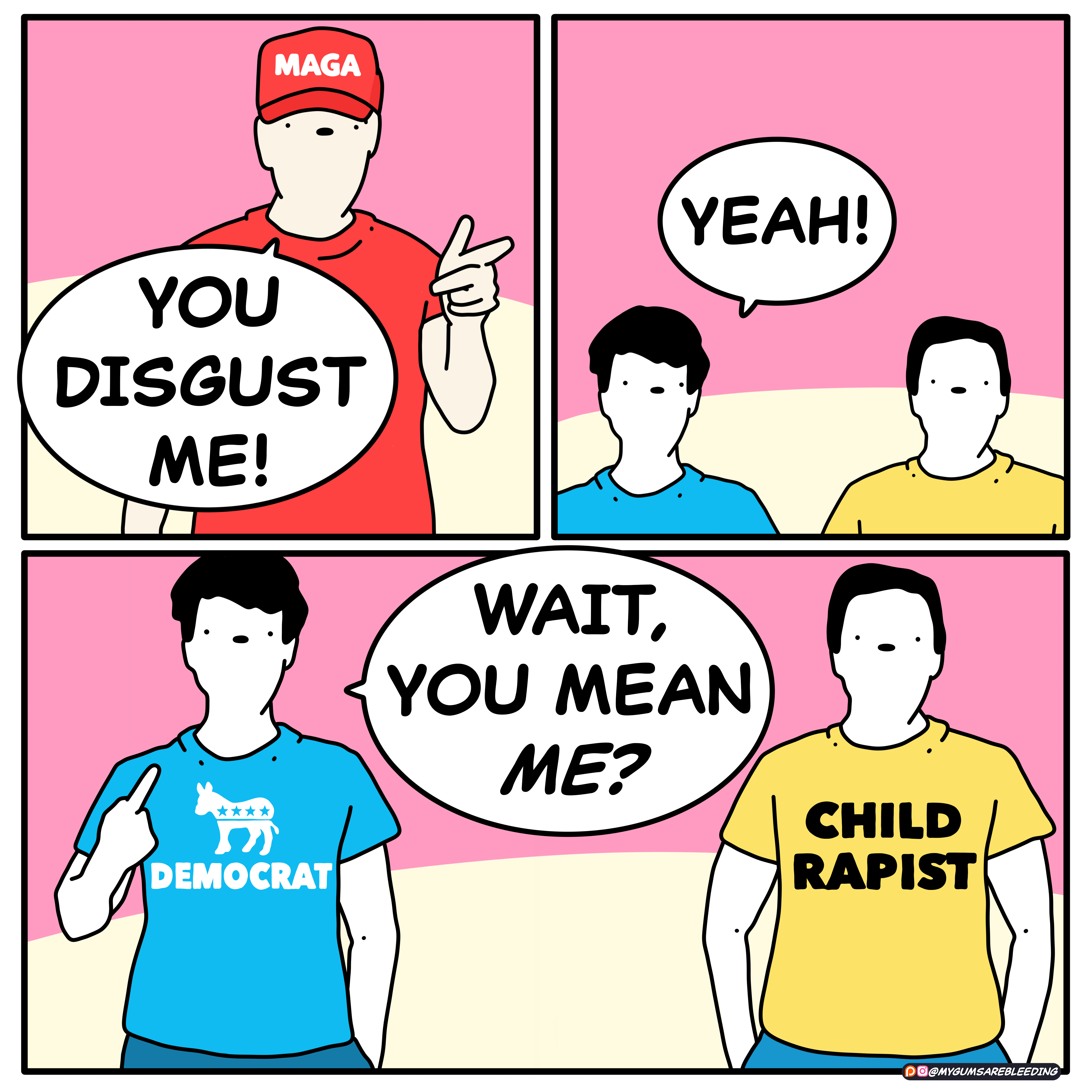 I mean Democrats disgust me too, but not more than child rapists…