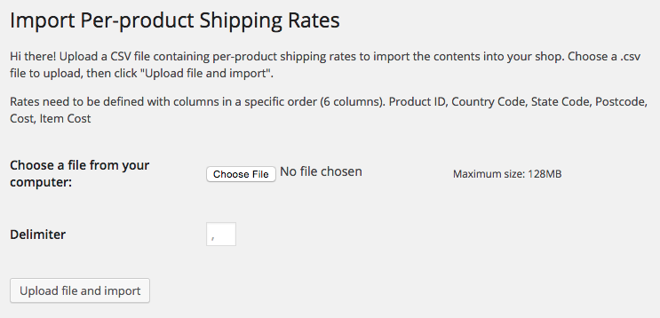 ↑ Back to topWhile the method above can be used to bulk import Per Product Shipping Rates, the same method doesn’t support turning the Per Product Shipping Setting on or off. However, this can be achieved via WooCommerce’s built-in product CSV Importer and Exporter.