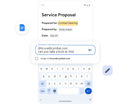 Google Workspacen mobiililaitteille sopivissa sovelluksissa saat saman käyttökokemuksen kuin vastaavissa tietokoneversioissa. Voit tehdä helposti yhteistyötä ja lisätä muokkauksia ja kommentteja Google , ja . Voit pitää yhteyttä muihin ja pysyä ajan tasalla , ja avulla. Ohjat pysyvät käsissäsi olinpaikastasi riippumatta, sillä voit hallita tiedostojen käyttöoikeuksia ja dokumenttien jakoa sekä kerätä palautetta millä tahansa laitteella.