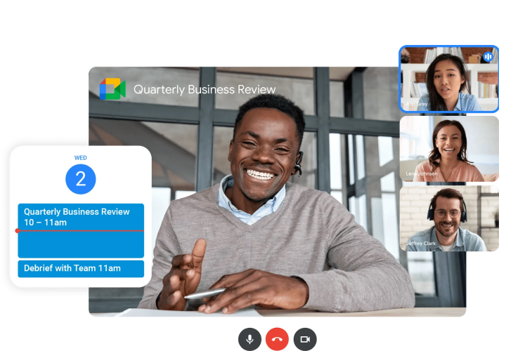 • Az ügyfeleinek olyan Google Meet-videohívásokon keresztül tarthat értékesítési bemutatót, amelyekhez bárhonnan, bármilyen eszközről, fiók nélkül is egyszerűen lehet csatlakozni