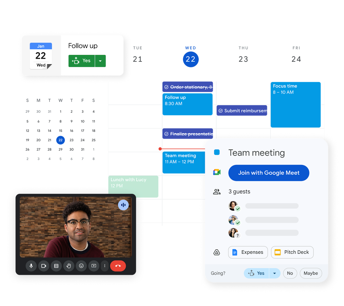 Ägna mindre tid åt planering och mer tid åt aktivt arbete med en delningsbar kalender som fungerar i hela Google Workspace.