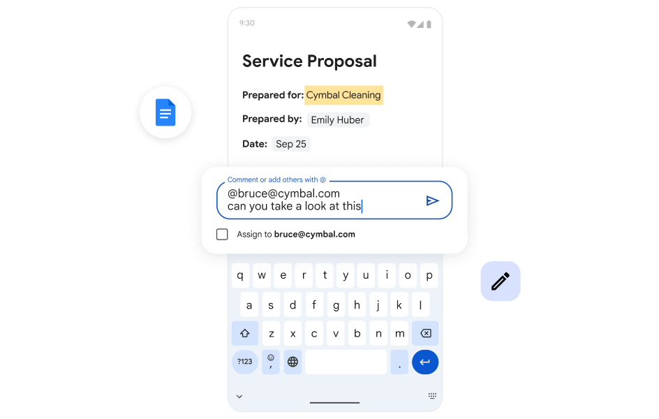Завдяки версіям додатків Google Workspace для мобільних пристроїв ви можете працювати на телефоні так само зручно, як і на комп’ютері. Легко працюйте разом у , додаючи зміни й коментарі в Google , і . Будьте в курсі всіх обговорень у , і . І, звичайно, керуйте робочим процесом, де б ви не були, налаштовуючи дозволи файлів і доступ до документів та своєчасно отримуючи зворотний зв’язок незалежно від того, який пристрій ви використовуєте.