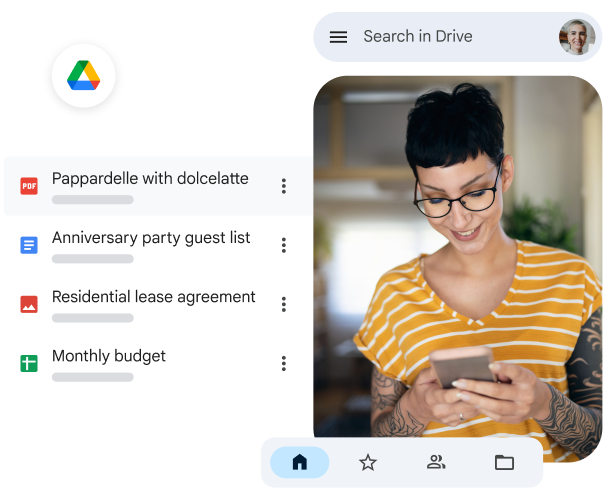 Усі документи й файли Google Workspace, які ви редагуєте або створюєте в додатках для телефона, автоматично зберігаються на . Ви можете легко створювати й змінювати електронні таблиці, документи та презентації, а також ділитися ними на мобільних пристроях, де б ви не були. Ви також можете виконувати на Диску пошук файлів і папок, до яких вам надано доступ, безпосередньо на телефоні. Дозволи на доступ до файлів і папок на Диску працюють у мобільній версії додатка так само, як і у версії для комп’ютерів.