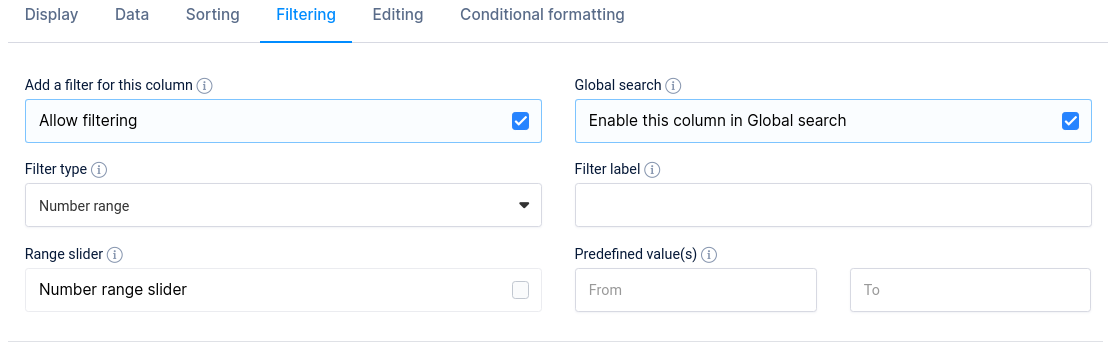 Before you start constructing this table, our advice is to access wpDataTables Settings/Custom JS and CSS tab and add the following CSS to the Custom CSS box, so all custom code is automatically applied while you're constructing the table.