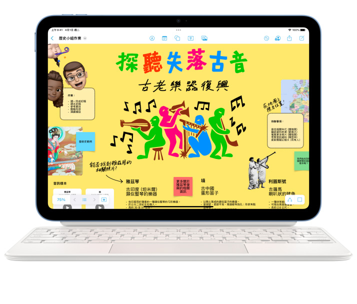 有了飛快的 A16 晶片,工作起來比以往更輕鬆,大事小事,一部裝置全部做好。你可以寫筆記、傳訊息,還能順暢地多工處理,在多個 app 間來回切換。不論是製作簡報裡的圓餅圖,還是各種圓餅的食譜,都沒問題,iPad 的設計,就是為實現各式各樣的生產創作而生。