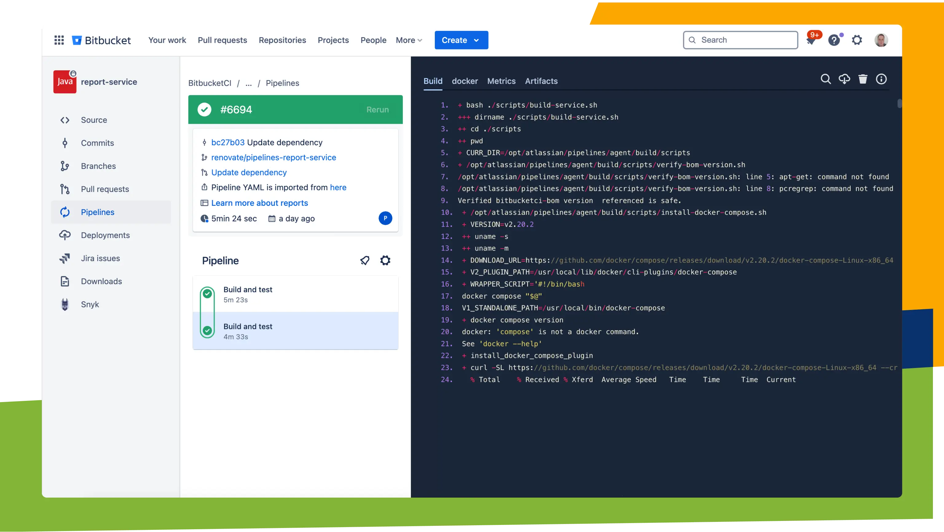 Bitbucket 내에서 바로 파이프라인 진행률을 추적하고 로그를 모니터링하며 조직 전반의 이슈를 디버깅하세요.