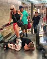 Marcelo dance in street with son