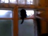Un chat pris en flag en train d'imiter le chien... Vilain