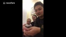 The clip, captured in Panzhihua City in southern China's Sichuan Province on May 11, shows the baby lying in bed with his eyes closed, suddenly using his hands to put one of his feet into his mouth and licking it.