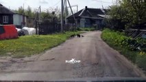 Ce corbeau vient manger dans la gamelle des chats et ils ne bronchent pas!