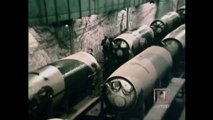 Original WWII colour footage on captured german film showing V2 rocket launch site and preparations, launch and flight of rocket.