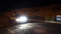Un coche particular intenta entrar en el tramo del rally de Atogo (Tenerife)