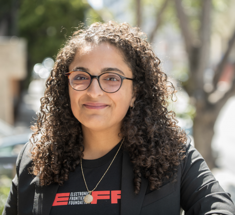 Rindala "Rin" Alajaji (she/her) is the Associate Director of State Affairs at the Electronic Frontier Foundation, primarily focused on state legislation impacting digital privacy, reproductive rights, and free expression. Prior to joining EFF, Rin worked to advance and defend civil rights and education justice policies in state legislatures as GLSEN's State and Local Policy Manager and Equality Florida's Public Policy Manager. She is a graduate of Columbia University's Human Rights Studies M.A. program, and holds a B.S. in Applied Psychology and Global Public Health from New York University.