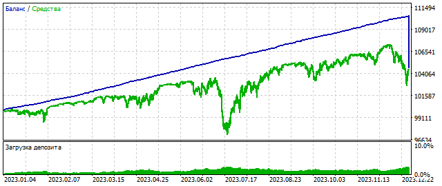 Я буду использовать символ EURUSD, таймфрейм H1. Период тестирования с 1 января по 31 декабря 2023 г. Таймфрейм трейлинг-стопа M1. Направление и объем позиций определяется случайным образом. Стоп-лосс и тейк-профит позиций не устанавливается.
