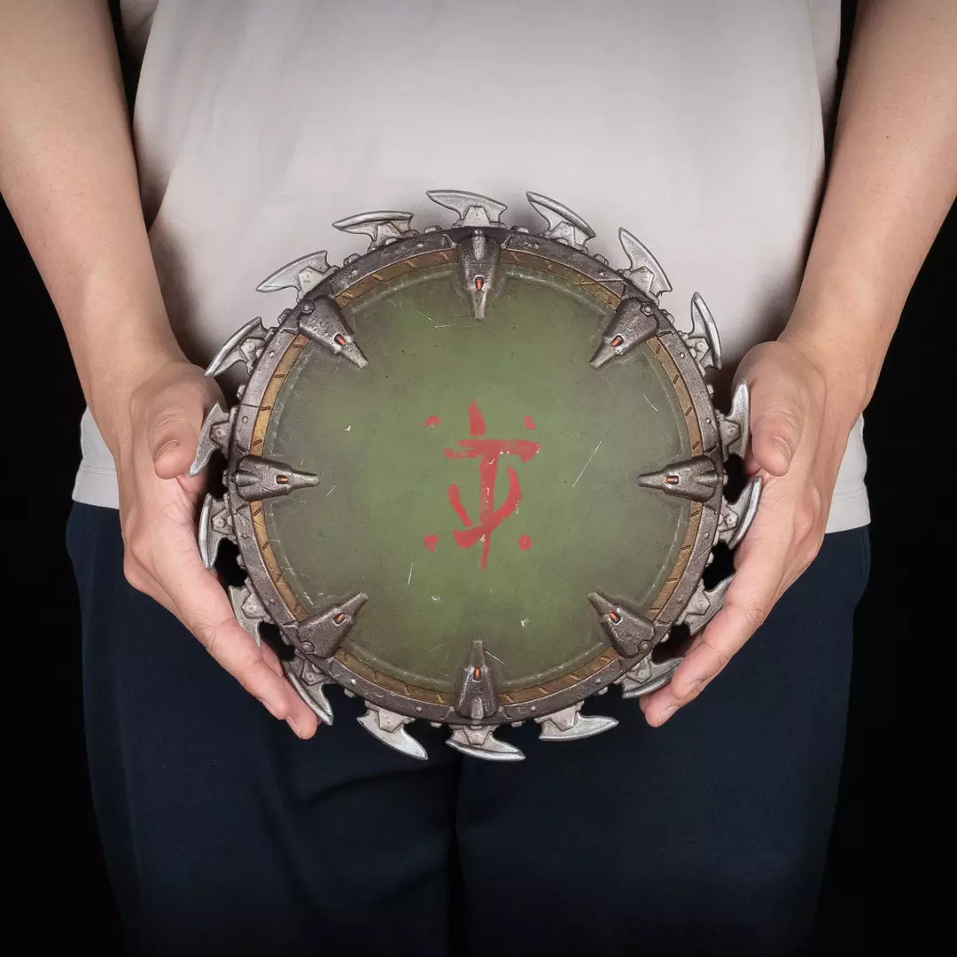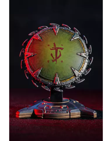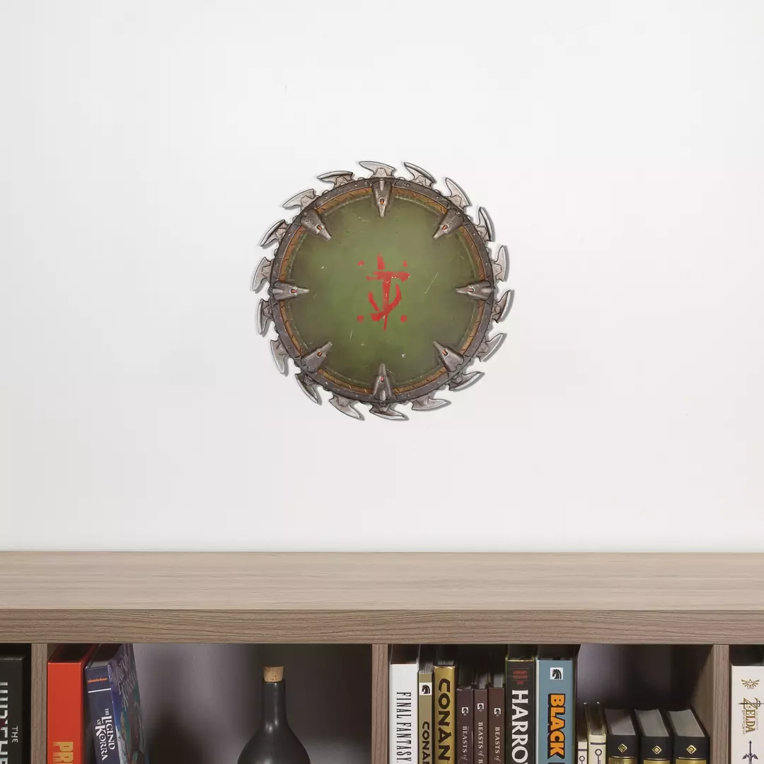 Inspirada en el escudo-sierra del Slayer, esta reproducción de 25 x 25 cm captura cada detalle del arma circular: el núcleo central con acabado envejecido, el emblema rojo grabado y el perímetro dentado listo para el combate. Su acabado metálico y texturas realistas evocan la crudeza del universo DOOM, convirtiéndola en una pieza perfecta para exhibir en pared junto a tu setup gaming o vitrina temática.